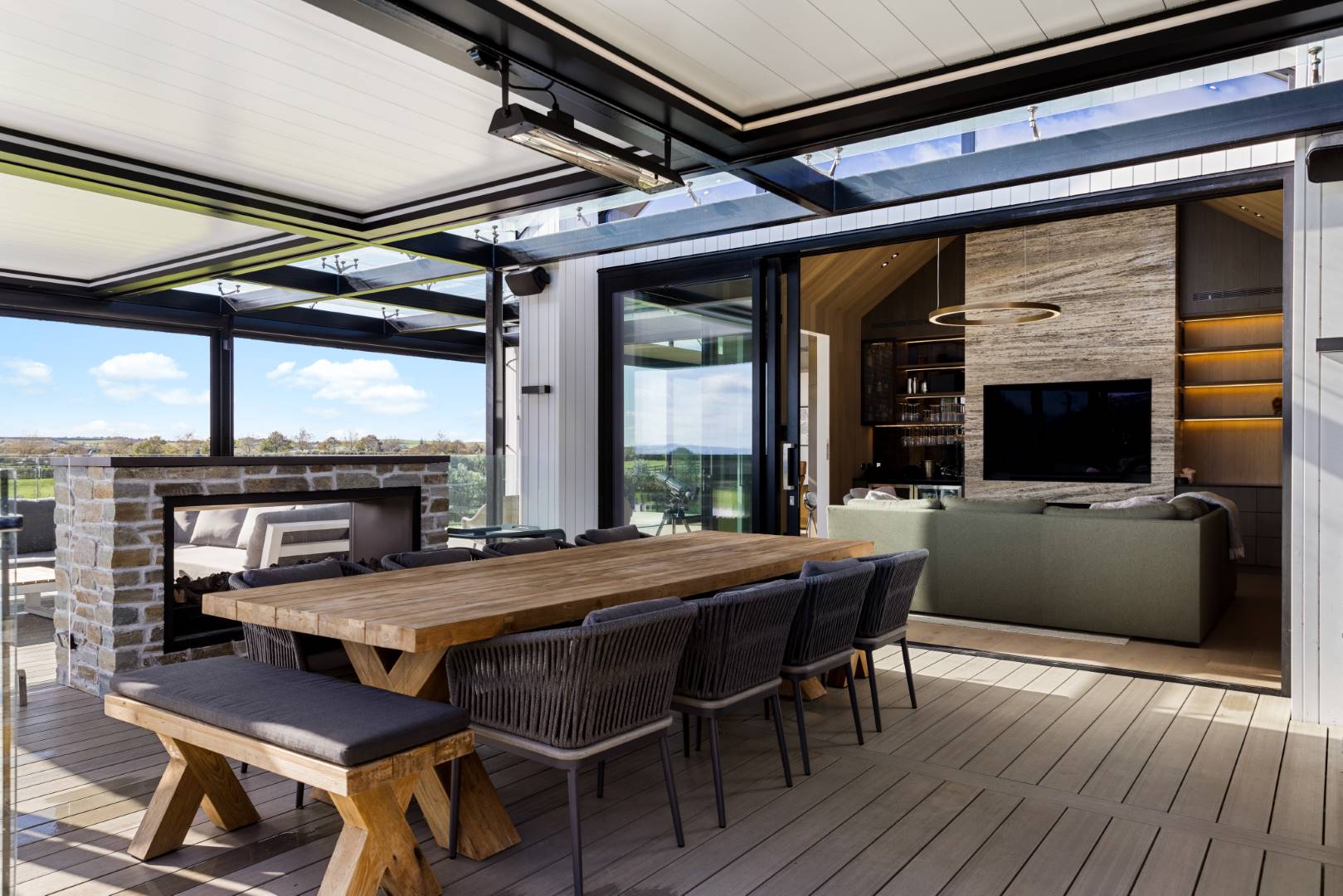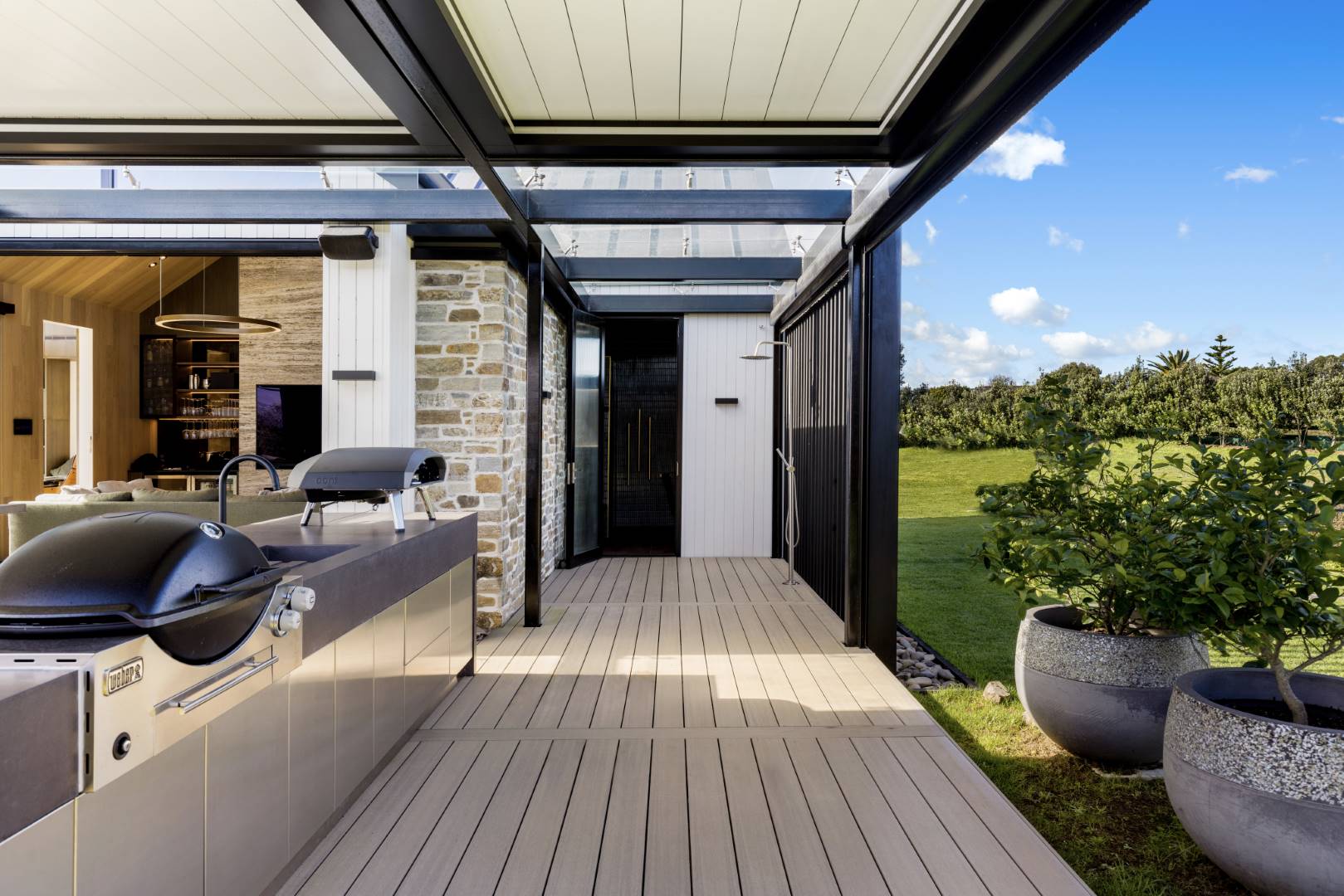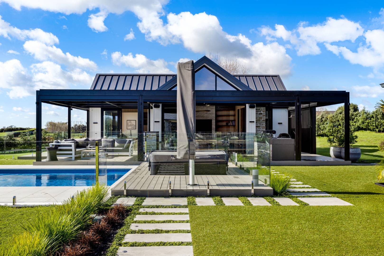Tra le dolci colline e i paesaggi sconfinati della campagna neozelandese sorge una villa moderna che interpreta al meglio il dialogo tra architettura e natura. La vista è dominata dal blu intenso della piscina, che riflette il cielo e diventa il centro visivo e funzionale dell’intero outdoor. Attorno, un manto verde curato e rigoglioso incornicia gli spazi esterni, regalando una sensazione di tranquillità e armonia con l’ambiente.